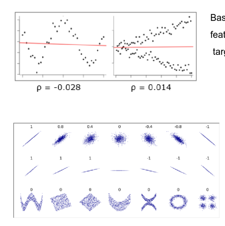 Nu hebben we alleen een probleem, pearson correlation gaat aangeven dat er hier geen correlation is. Het kan wel een deel van de non-linear correlation detecteren, als er een linear gedeelte in zit. Maar zoals je ziet op het bovenstaande plaatje, is pearson correlation redelijk slecht hierin.