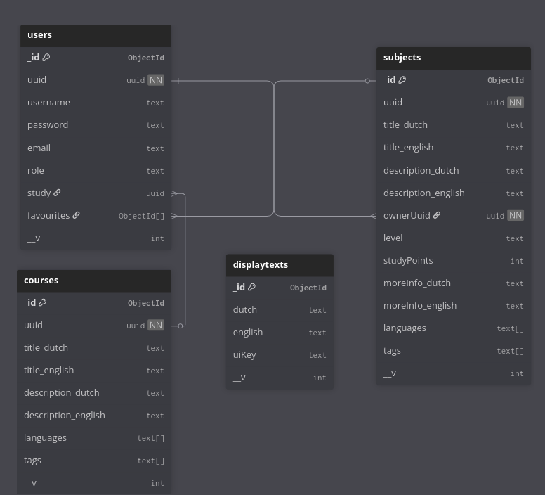 Mijn database is mongodb, deze heb ik zelf gehost op mijn vps met docker. Mijn database heeft 4 collections zoals hier te zien is.